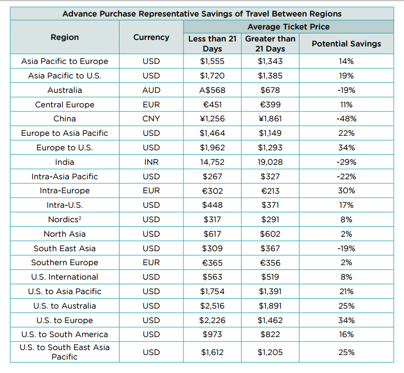 Σύμφωνα με έρευνα, που διενήργησαν η Airlines Reporting Corporation (ARC) και η Expedia, αναλύοντας εκατοντάδες εκατ. αεροπορικά εισιτήρια και 12,5 δισ. πτήσεις σε όλο τον κόσμο, τα ταξίδια από τη Ν. Αμερική προς τη ΝΑ Ασία, από τη Β. Αμερική προς τη Ν. Ευρώπη και από την Κίνα προς τη Ν. Ευρώπη είχαν τη μεγαλύτερη πτώση στο κόστος των εισιτηρίων: